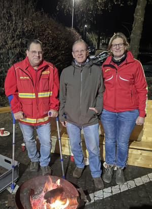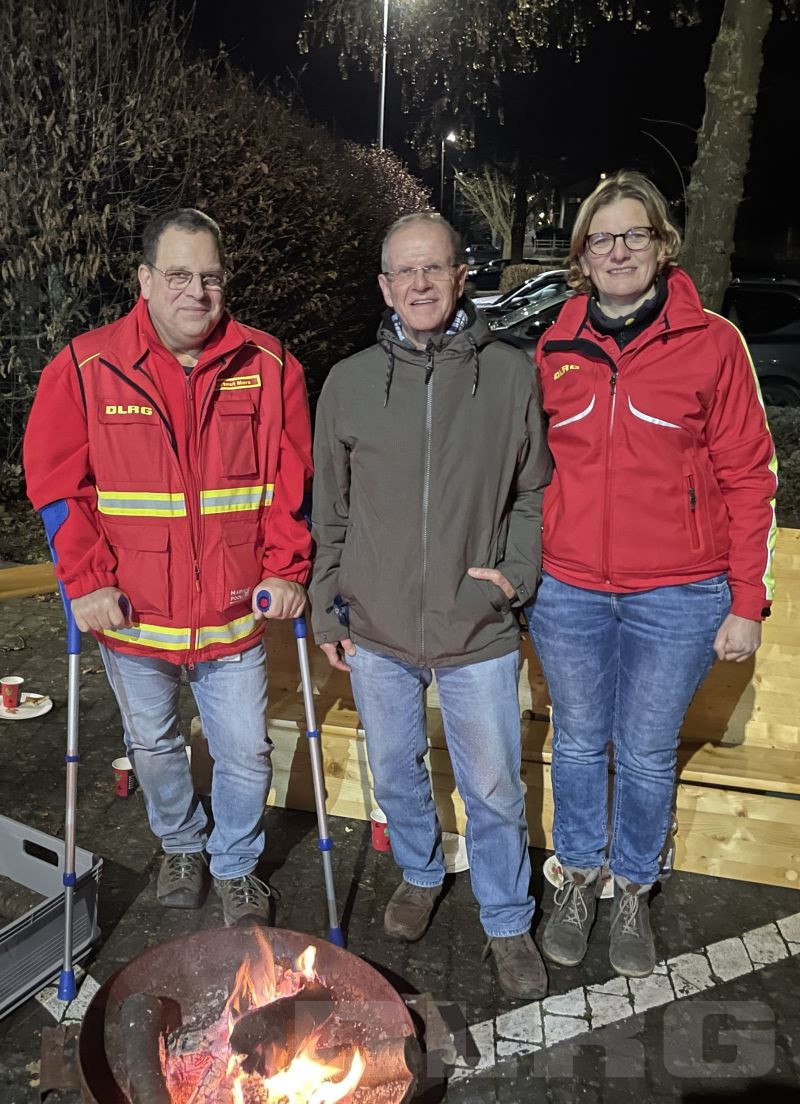 Am Abend waren dann alle Eltern und erwachsenen Mitglieder eingeladen, die gebackenen Plätzchen zu probieren. Vor dem DLRG Heim wurden aber nicht nur Plätzchen, sondern auch allerlei anderes mitgebrachtes Essen beim gemütlichen Beisammensein am knisternden Holzfeuer mit Kinderpunsch verspeist. Zudem kam unser Ortsvorsteher Heinz Seidel zu Besuch, überbrachte eine Spende für die Jugendarbeit und beteiligte sich an den zahlreichen Gesprächen der Teilnehmer.